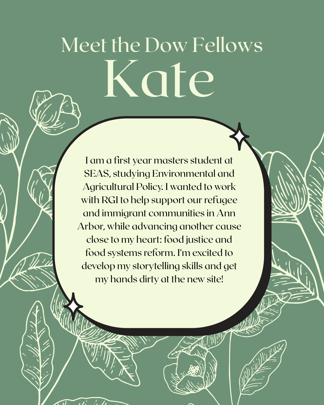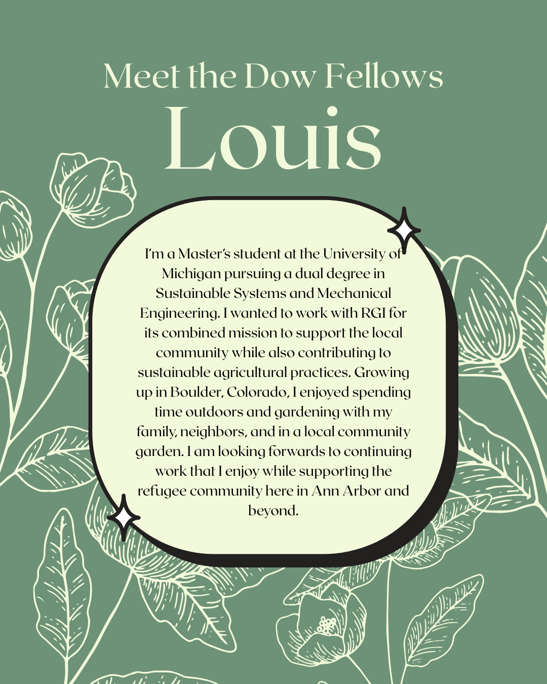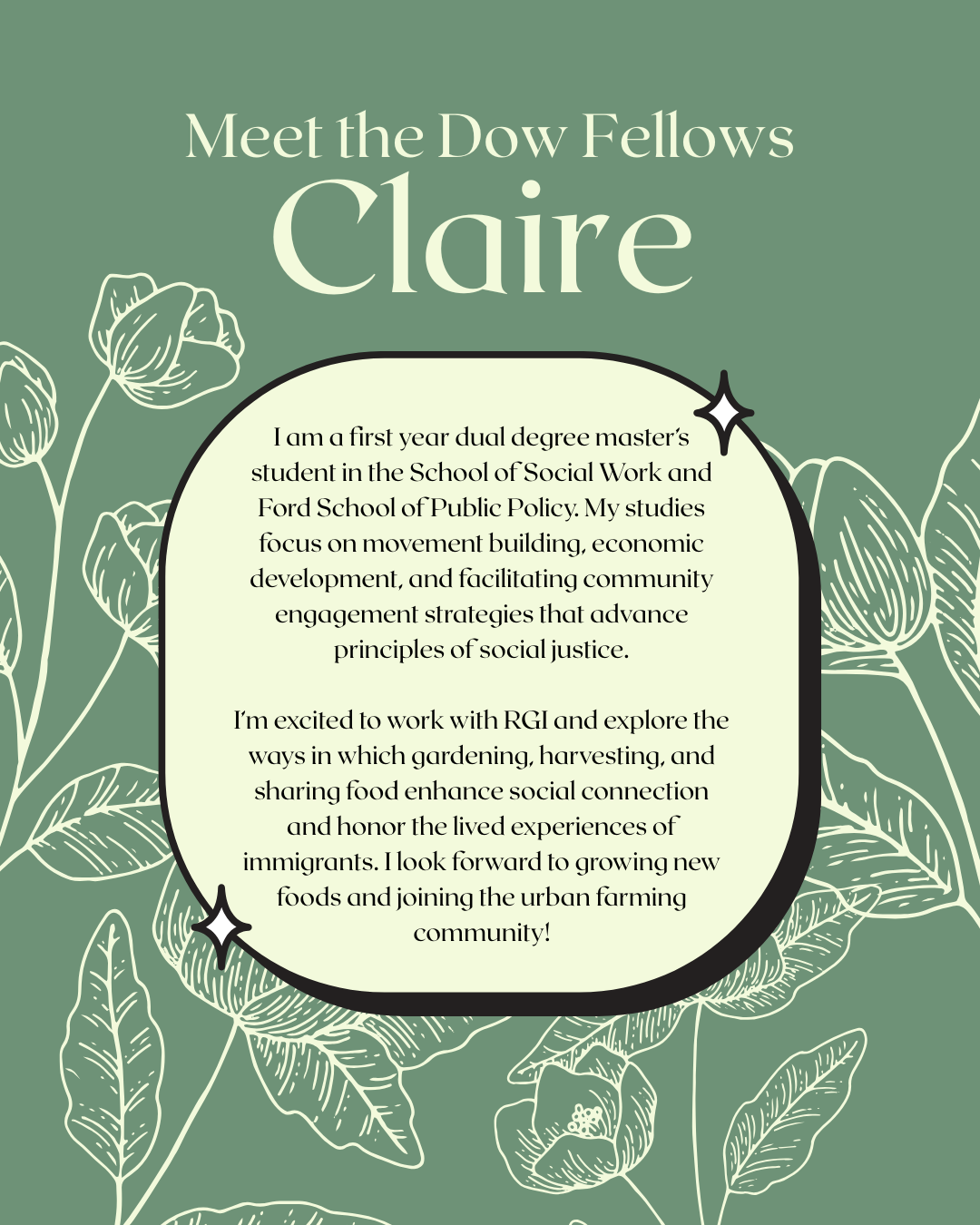conditions in MD), as a Student Manager for the U-M Campus Farm, and a Dow Sustainability Fellow. Through her work with RGI